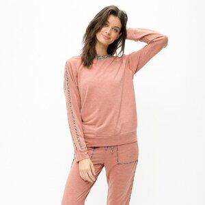 Cozy Rust Lounge Top with Leopard Trim | Long Sleeve Pullover