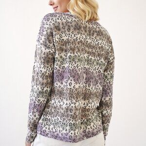 MYSTREE Leopard Print V-Neck Long Sleeve Top, Neutral & Purple Ombre Animal
