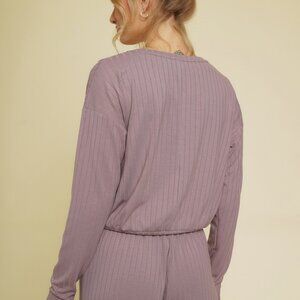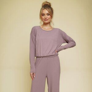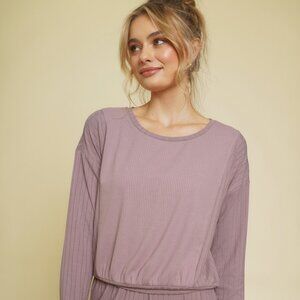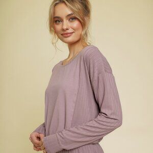 Mauve Ribbed Long Sleeve Top, Soft Lounge Pullover