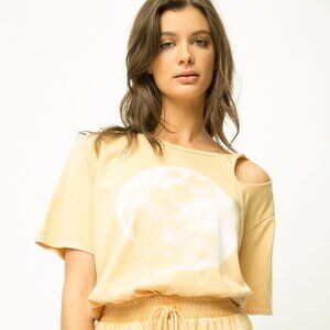 π Soft washed peach tee with vintage-style moon graphic print
