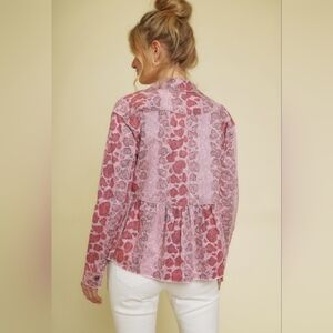 MYSTREE Pink Animal Print Button Down Jacket – Long Sleeve Utility Shacket Style