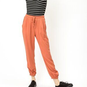 MYSTREE Rust Orange Stripe Side Joggers, Drawstring Waist, Casual Pants