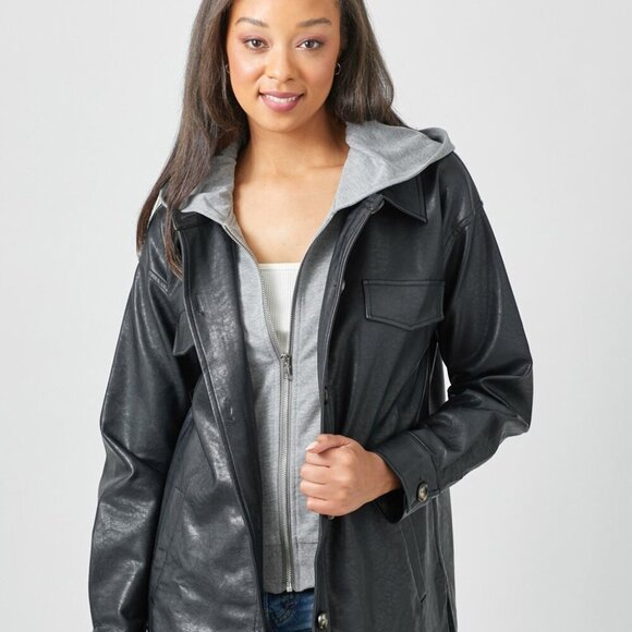 MYSTREE TWOFER HOODIE FAUX LEATHER JACKET