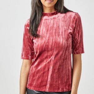 Velvet Mock Neck Short Sleeve Top, Dusty Rose Red, Soft Luxe Stretch