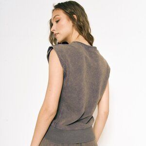 washed sleeveless top, vintage charcoal tank, edgy muscle tee women, distressed wash tee, boutique sleeveless top, lounge muscle shirt, faded gray tank, trendy casual summer top, vintage wash muscle tee, streetwear style sleeveless shirt