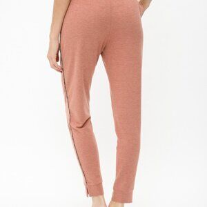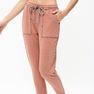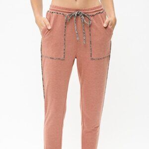 MYSTREE Women’s Jogger Pants – Rust Rose with Leopard Trim | Comfy Lounge Pants