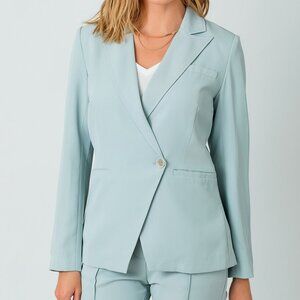 women’s blazer, tailored suit jacket, light blue blazer, pastel blazer, office wear, career jacket, business casual, structured blazer, one button blazer, classic work jacket, chic blazer, modern blazer, formal jacket, spring blazer, women’s outerwear, dressy blazer