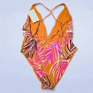 Maaji Reversible Safari Caramel Brown V-Plunge One Piece Swimsuit - Size Large