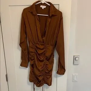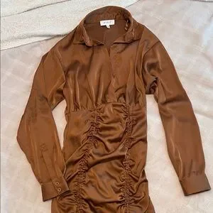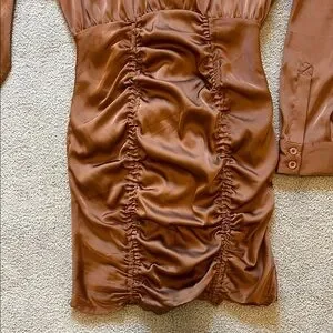 Mable Brown Satin Rouched Mini Dress Size Small