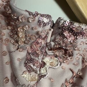 Fully lined through bodice and skirt; sheer unlined sleeves