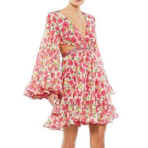 Mac Duggal Floral Print Bell Sleeve A-Line Dress