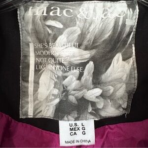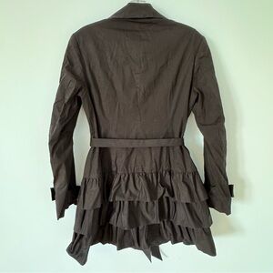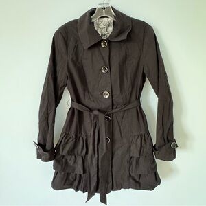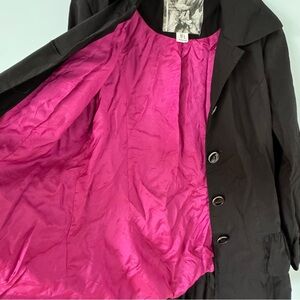 Mac & Jac Black Ruffle Hem Belted Trench Coat+Buttons Pink Liner size Large