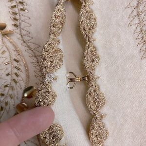 Great used condition. No holes or stains. No pulls. Minor pilling in high friction areas. Sequins and beads and metallic thread decorations. The hook closures could be tightened up but I’m not good with that kind of thing. As is it stays closed. Size L, measurements in pics.