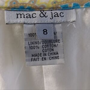 Mac & Jac skirt Paisley print with cream base. green small sequins sewn on jewel embellishments on skirt as well. size 8. invisible zipper on the side. cute ruffle hem. large pleats on hip area. has been pre owned. some signs of wear. fully lined boho style, cottage core, granny core.