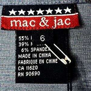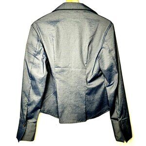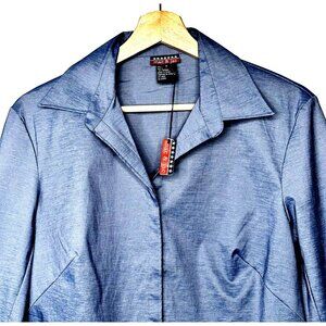 Mac & Jac Womens Blouse Shiny Long Sleeve Shirt Polyester Blend Blue Size 6 NWT