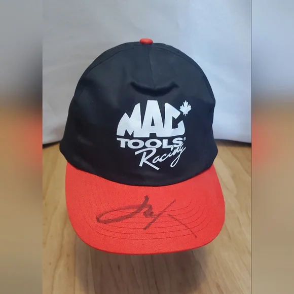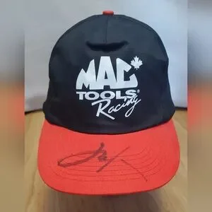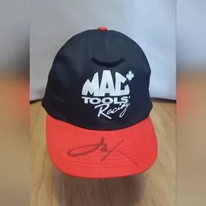 Mac Tools Racing cap with a black crown and red brim. Features a signature on the brim. sold as is good condition