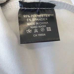 Flaw: White threads at bottom on hem double sewn line with some parts with missing thread. Hem in tact and not affecting wear - - shown in hem close up pictures