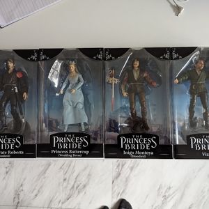 Macfarlane Princess Bride Collection (Inigo Montoya, Princess Buttercup in Wedding dress, Dread Pirate Roberts (Wesley) and Vizzini. All brand new and still in packaging unopened. Each for $20 or all for $60