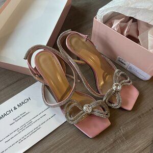 Mach & Mach Crystal Double Bow Square Toe Sandals