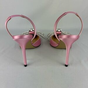 Mach & Mach RARE Double Bow Crystal-embellished Pink Satin Slingback Heels