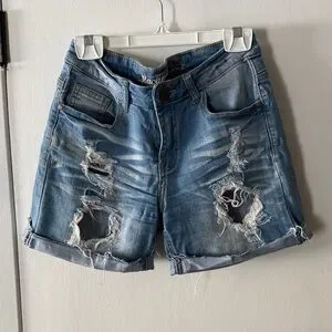 Trendy ripped jean shorts. Casual and stylish. Perfect for everyday wear.
