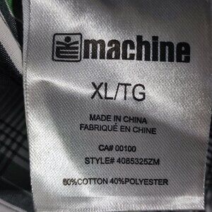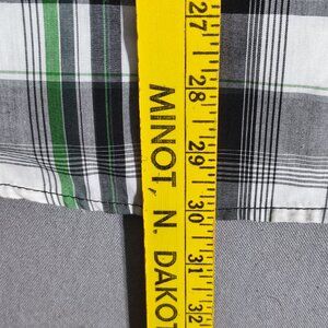 Western style button down shirt in white grey and light green checks pattern with front decoration
