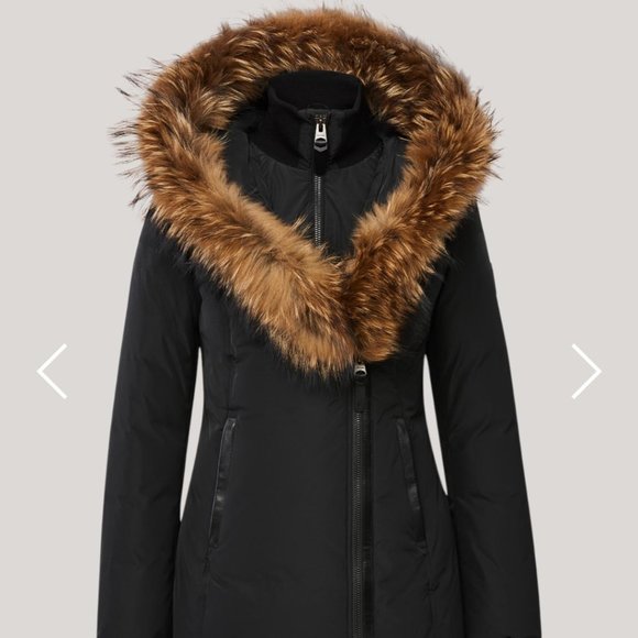 Shell (Woven): 100% Polyester. Combo: 100% Cow Leather. Lining: 100% Polyester. Filling: 90% Duck Down, 10% Feathers Fur 100% Finland Racoon. Water-resistant & water-repellent.