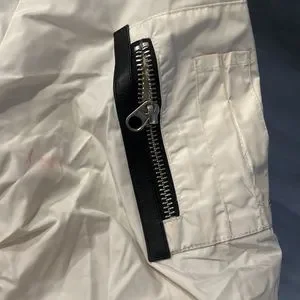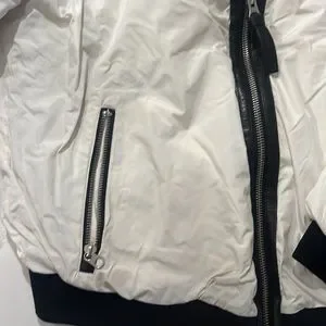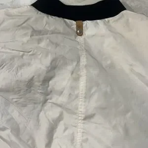 Mackage white bomber with grey inside! 8/10 condition it could be dry cleaned w some TlC small stain as you can see in pictures. Price cut down alot :) still beautiful jacket and timeless