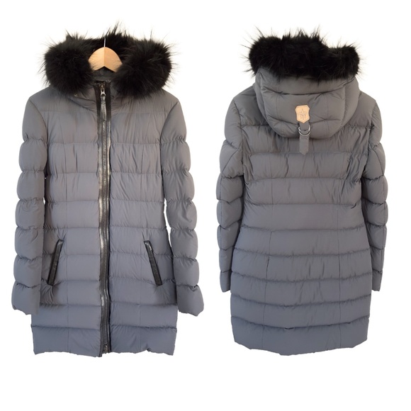 Mackage | Calla Stretch Down Coat w/ Detachable Fox Fur Trim – XS, Charcoal