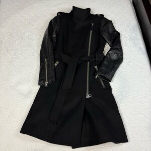 Mackage Dale Black Trench Coat with Leather Sleeves