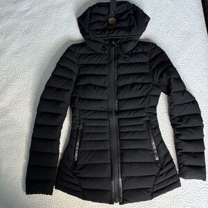 Stylish dark quilted outerwear by Mackage. Perfect for chic warmth.