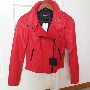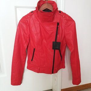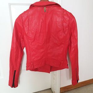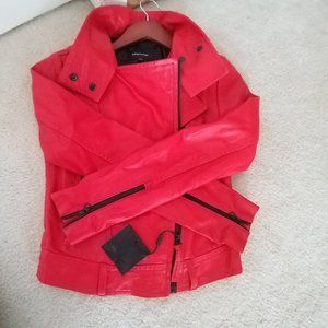 Mackage Hania Leather Moto Zip Jacket Size xxs Red / Flame New (Missing Belt)