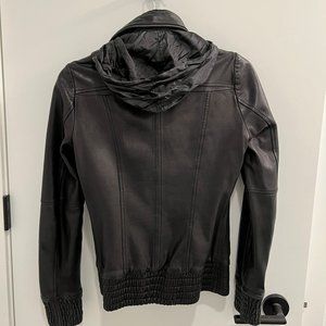 Mackage Leather Jacket Black XXS Aritzia Bomber Hidden Hood