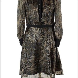 Mackage Long Sleeves Dress Black&Gold Chiffon Silk