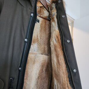 MORITZ is a twill parka for men with a removable silver fox fur trim around the hood. Water resistant, repellent, and windproof, it features a body and hood lined with luxurious rabbit fur. Storm cuffs, down-lined sleeves and (R) Leather drawcords at the waist improve heat retention. Plush construction meets high-performance in this elevated winter essentail engineered for superior protection.