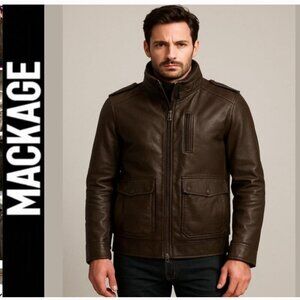 Men’s softest 100% lamb leather Mackage MENS BROWN LEATHER Moto JACKET