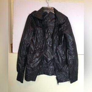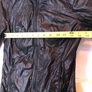 Jacket is in good used condition. Has signs of wear to hardware, wear to logo on bag (fade). No rips or stains.