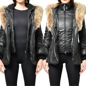 Mackage Black Nylon Double Zip Fur Hood Lined Parka Cableknit Collar and cuffs