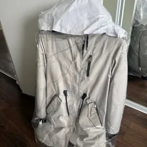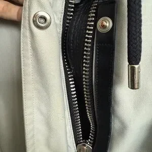 This is a rare and discontinued style. I’ve dry cleaned it but it does have a few faint stains and tarnishing to the zippers/buttons as pictured.