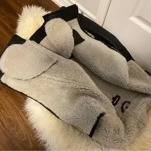 Black Shearling Jacket , Full leather inside out —-S size, Made in turkey( will keep you super super warm - imagine sleep inside ugg boots)