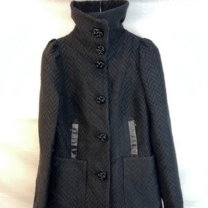 Mackage Small Women's Herringbone Peacoat in Black with Leather Pockets 80% OFF!