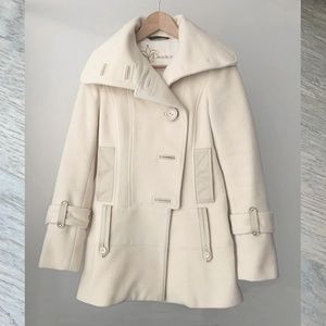 Gorgeous MACKAGE off-white Wool Cashmere Peacoat with Leather Trims