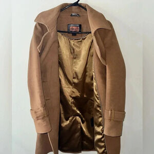 In Pre Owned Amazing Condition-Embrace the classic warmth and elegance with the Mackage wool coat, tailored specifically for women who appreciate a perfect blend of style and comfort. The coat features a rich brown hue that complements a myriad of outfits, making it a versatile addition to your wardrobe. Crafted from high-quality wool, this pea coat ensures durability and heat retention. It boasts a regular fit in a 2XS size, a seamless button closure that adds a touch of sophistication, and a design that's easy to care for, requiring only dry cleaning to maintain its sleek appearance.