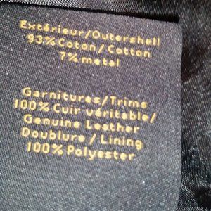 Mackage black military style jacket. Cotton with leather trim and accents. Leather under arm with hidden zipper and removable sleeves. Zipper accent under collar. Three button closure and two buttons on bottom of cuff. All buttons have Mackage signature. Leather trim and tabs over pockets. Size M . EUC