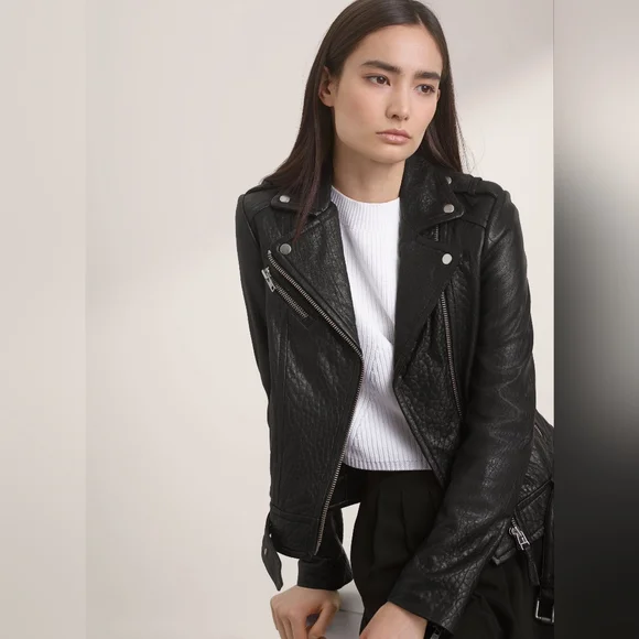 Inspired by traditional motorcycle styling, this pebbled leather jacket has been treated to Mackage's signature garment wash to give it the vintage look.