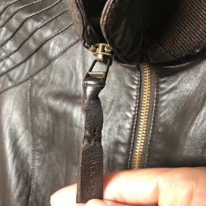 Not to be confused with the ordinary bomber, or the one with the ribbed polyester funnel neck -- this one has the CHIC ZIP-UP LEATHER AND RIBBED FABRIC LAPEL!