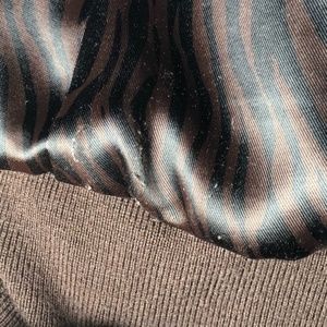 Yes, so pretty! Zip accents on the lower arms lead to the ribbed fabric cuffs. Size LARGE.