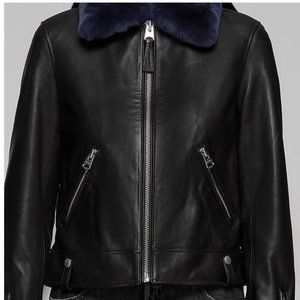 Mackage leather jacket removable BLUE fur collar