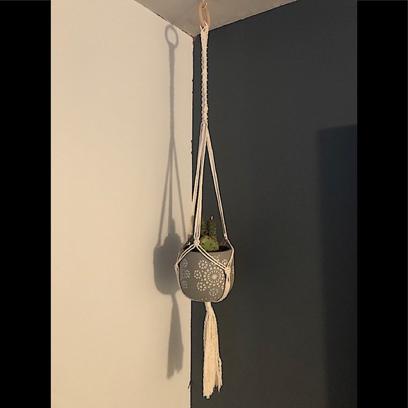 Handmade Macrame Plant Hanger. Approx. 3 ft long. Currently holding a 4 inch pot. Plant hanger does not