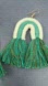 Cool earrings handmade in the shape of little rainbows with pretty teal green colored yarn.